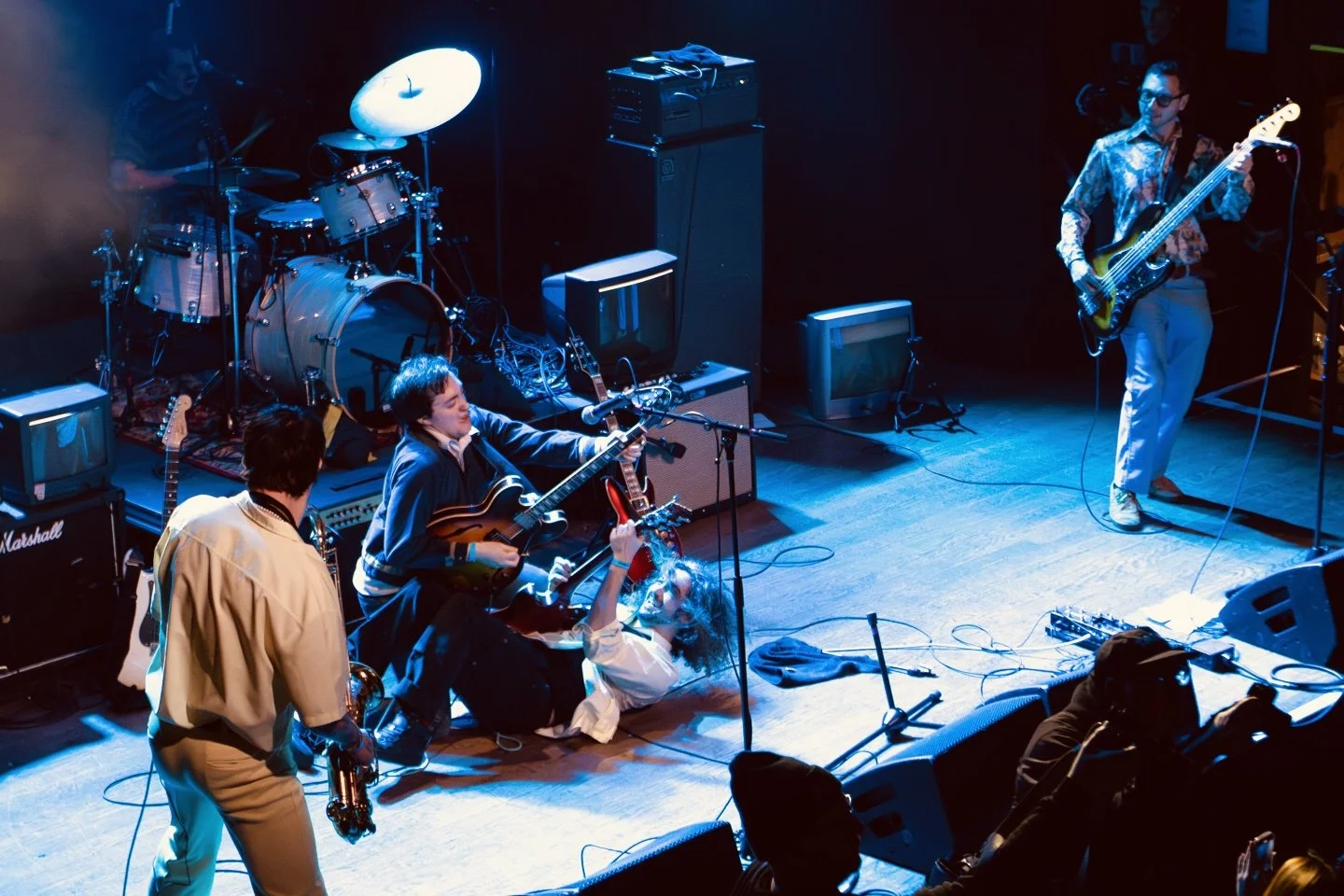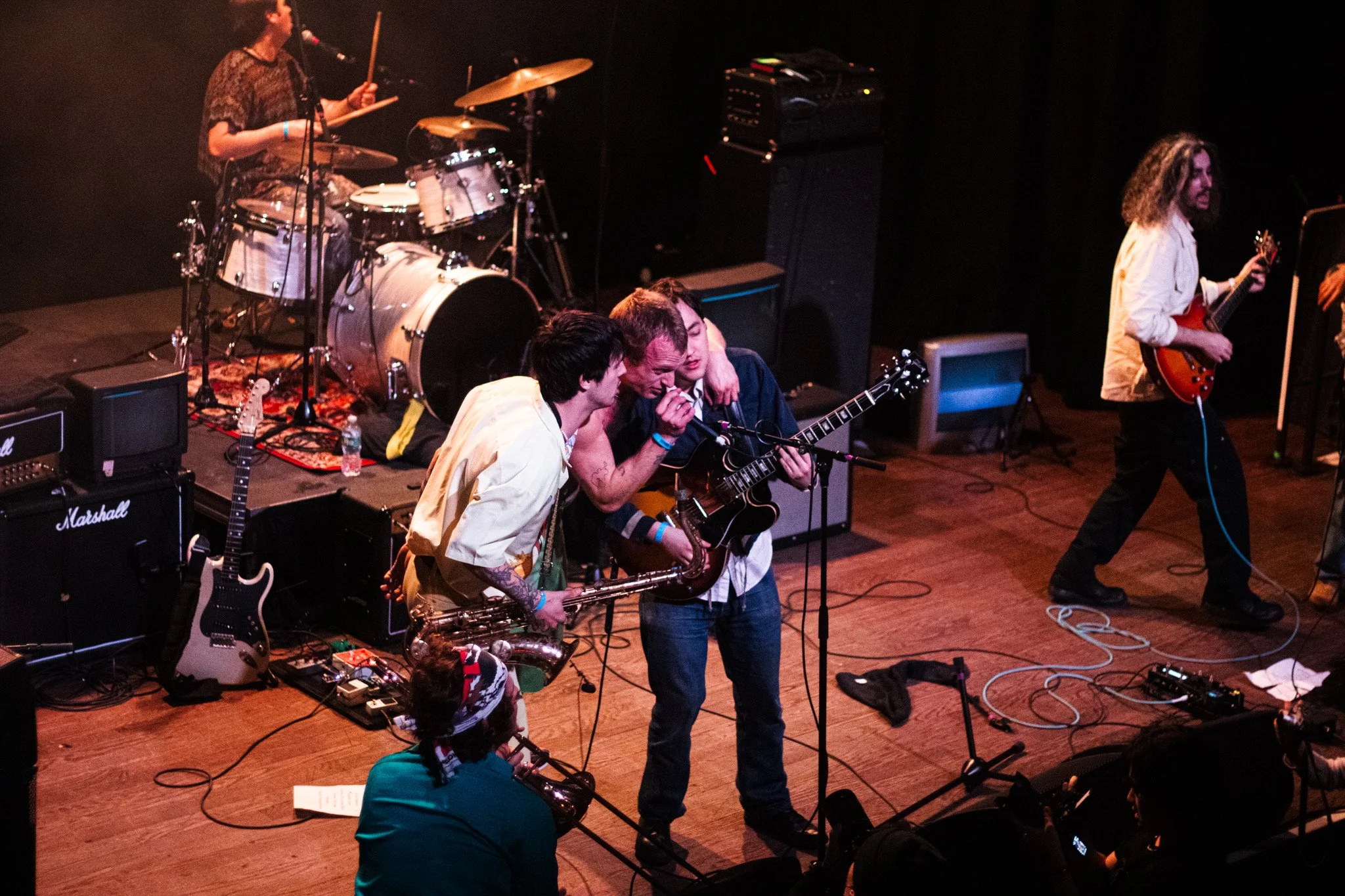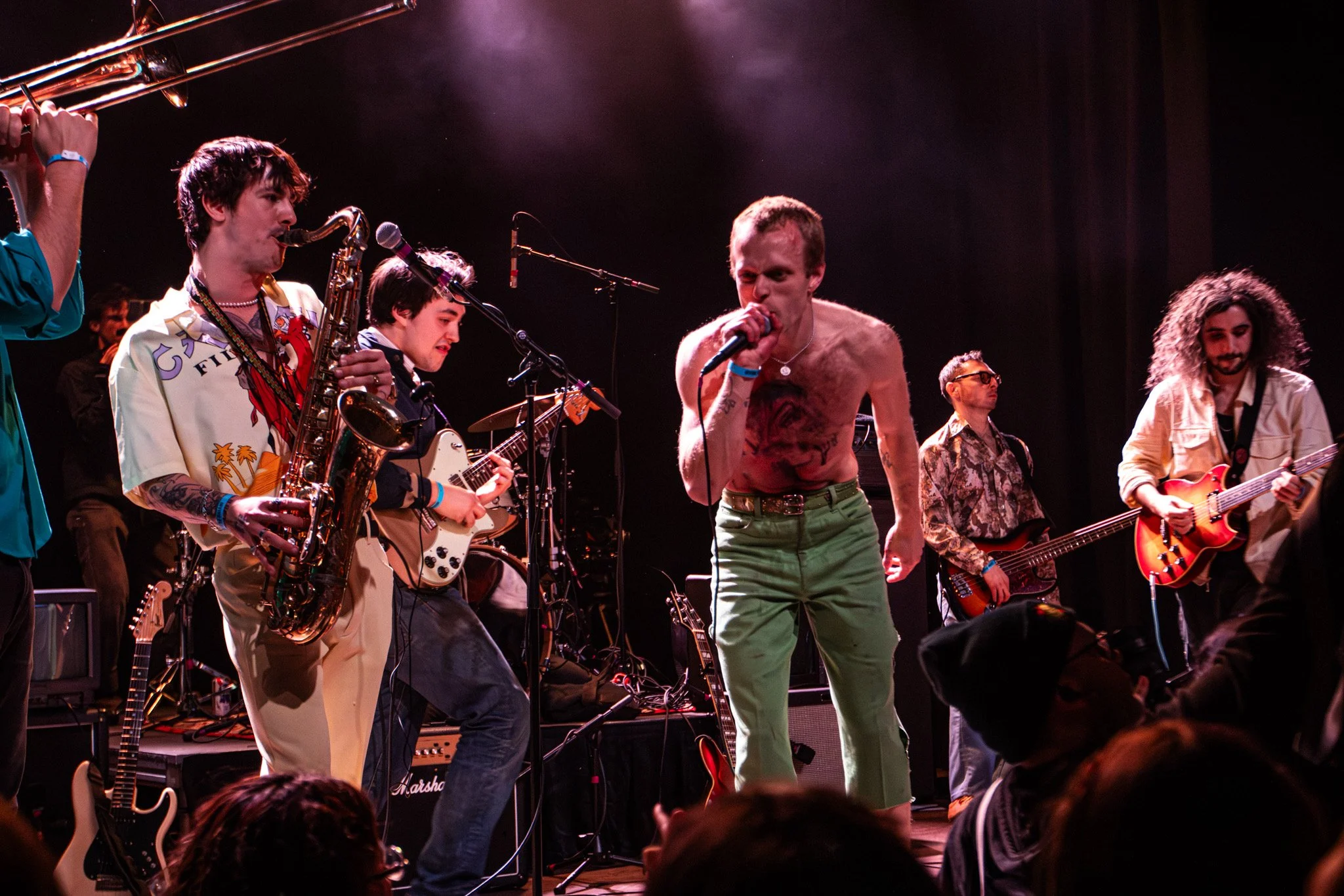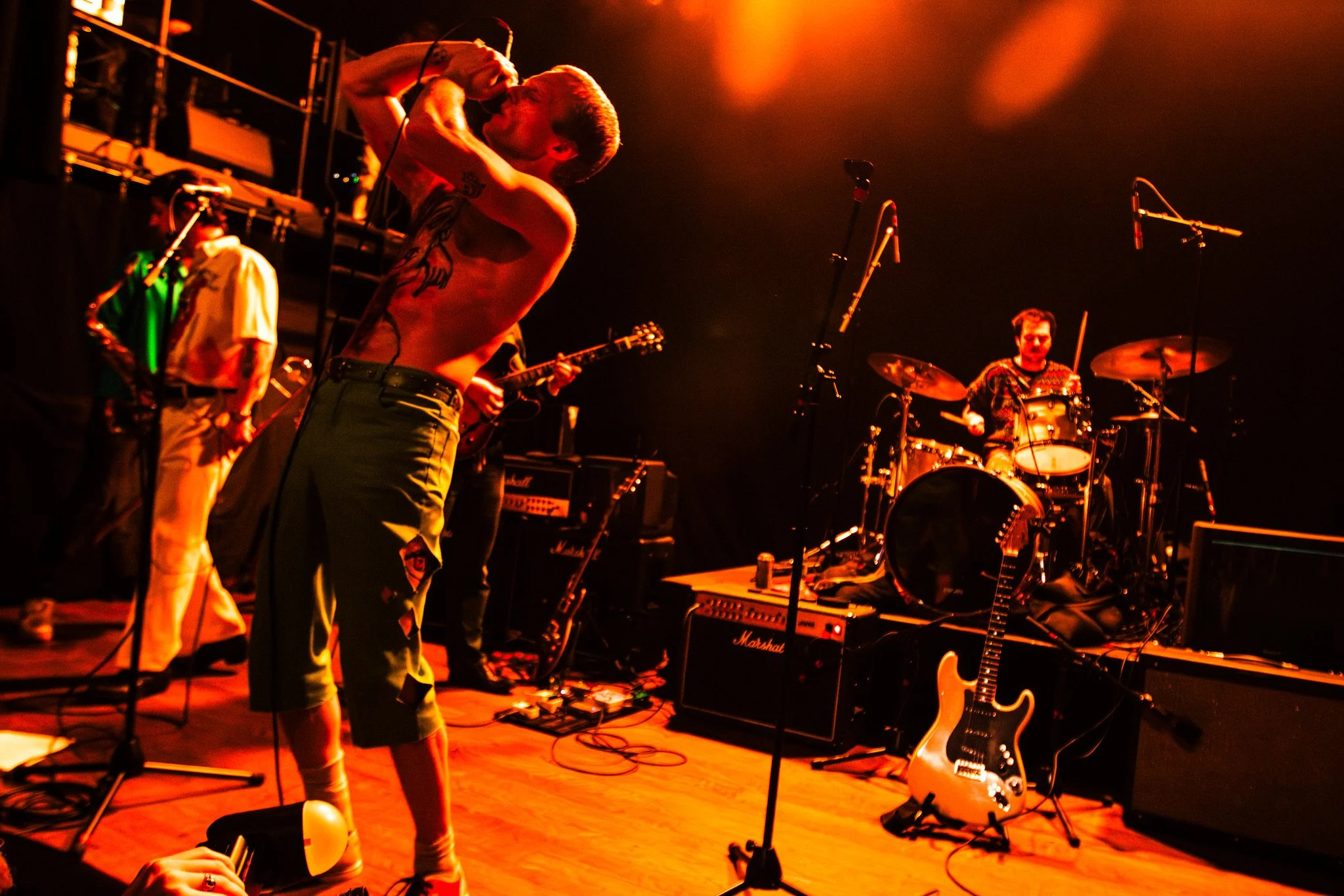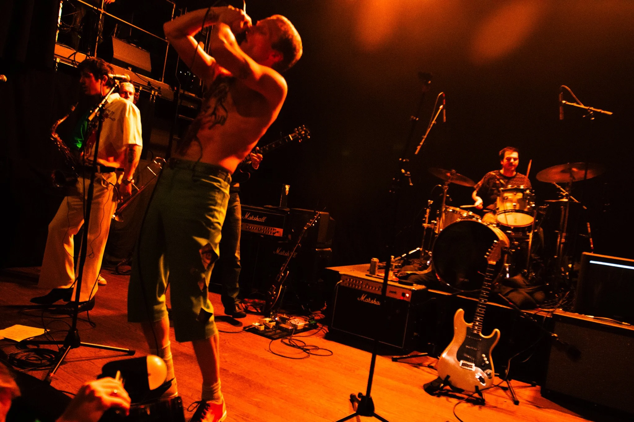 At their last show that I was at, Devlin played guitar as he laid on the ground of the crowd. Gabe was filling Devlin’s mouth with beer, which he later spits onto many of our faces. Greg was shirtless, laying on the skate ramp playing his sax. Chris was